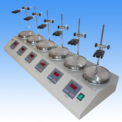 HJ-6A多頭恒溫磁力加熱攪拌器(智能型)又稱數(shù)顯恒溫多頭磁力攪拌器、六工位數(shù)顯恒溫磁力攪拌器、六聯(lián)恒溫磁力攪拌器、六頭恒溫磁力攪拌器、六組數(shù)顯恒溫磁力攪拌器、多頭數(shù)顯恒溫磁力攪拌器,HJ-6A多頭恒溫磁力加熱攪拌器(智能型)廣泛適用于石油、化工、醫(yī)藥衛(wèi)生、環(huán)保、生化、教育科研等企事業(yè)單位實(shí)驗(yàn)室。是在本所生產(chǎn)數(shù)顯恒溫磁力加熱攪拌器的基礎(chǔ)上新研制而成,可智能數(shù)顯設(shè)置各頭攪拌速度和加熱溫度,數(shù)顯控溫。HJ-6A多頭恒溫磁力加熱攪拌器(智能型)能在較廣的溫度、速度范圍內(nèi)對(duì)六組液體溶液進(jìn)行穩(wěn)定精密的恒溫?cái)嚢,特別適合小體積樣品的恒溫?cái)嚢韬妥鲗?duì)比試驗(yàn)。